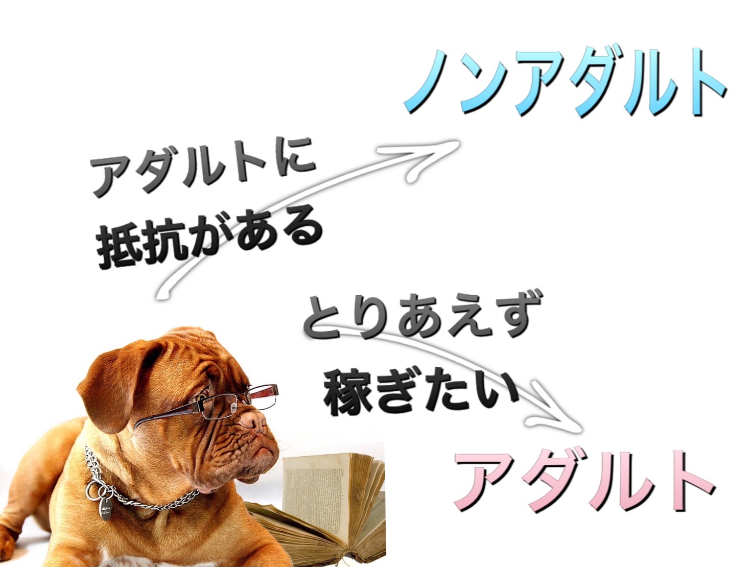 ノンアダルトが良いなぁ、でもアダルトの方が稼げるんだ・・アダルトは抵抗あるからノンアダルトがいいかな。というような感じではないでしょうか。